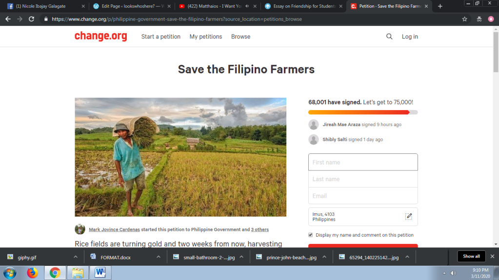 My own opinion,The Farmers of the nation produces the fruits, vegetables, and rice that are served on Filipino tables. It is because of the farmers’ ceaseless efforts that we have something to eat to fill our stomach and nourish our body.The sad thing is that most of the people you feed do not appreciate and give importance of your existence and contribution. What’s more heart-breaking is that you work harder, but earn less.You earn less not just because of the small amount of income you gain, but because of the little value given to you. You earn less because most of Filipinos do not deeply appreciate your important role in the society as food producers.